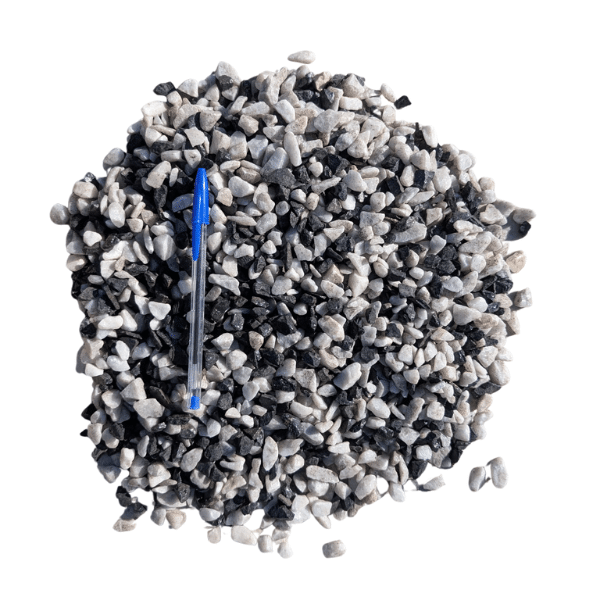 Gravillons concassés marbre Panda 8/12 : le gravier bicolore qui transforme vos espaces extérieurs